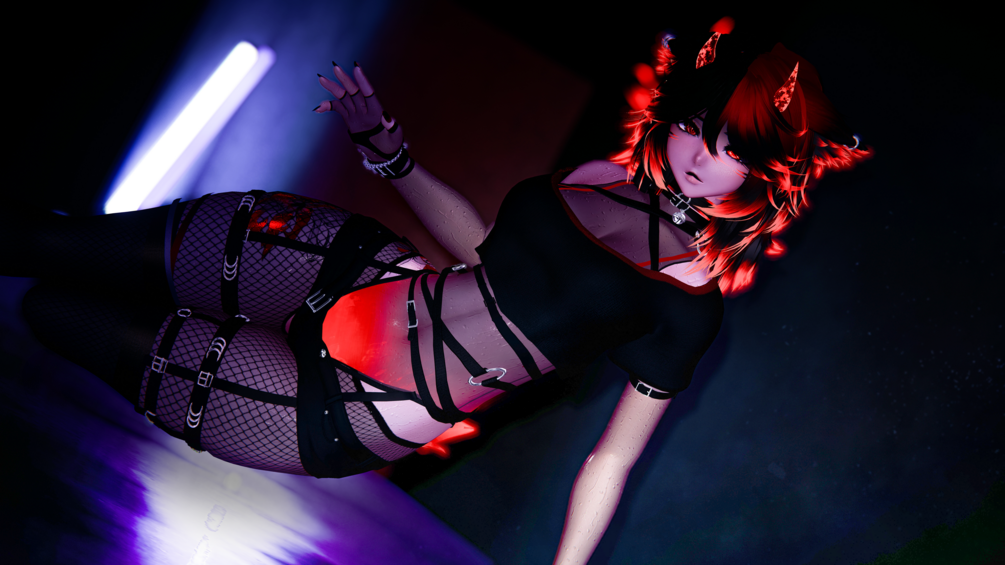 Tattoos, Inner Choker, Pasties, Cat ears, Horns, Leg strap & Ear piercings, Cat paws: Me